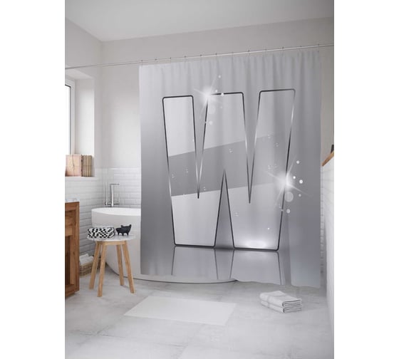 Штора (занавеска) для ванной JoyArty "Сверкающая w" из сатена, 180х200 см с крючками, sc_4522w