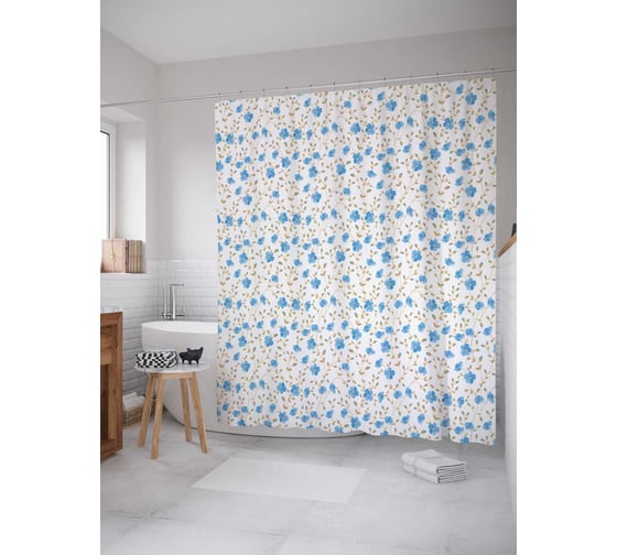 Сопутствующие товары для шторки-занавески JOYARTY Свежесть с цветами из сатена, 180х200 см с крючками