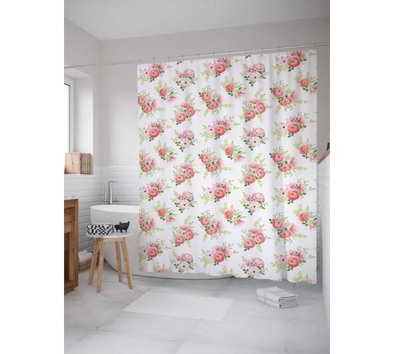 Сопутствующие товары для шторки-занавески JOYARTY Свежий цвет магнолий из сатена, 180х200 см с крючками