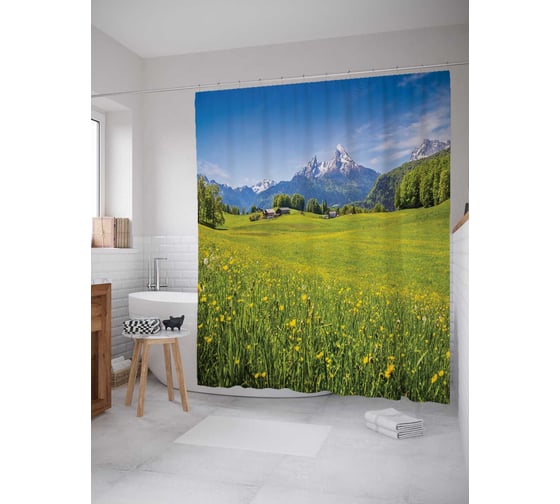 Штора (занавеска) для ванной JoyArty "Свежий воздух" из сатена, 180х200 см с крючками, sc_13672