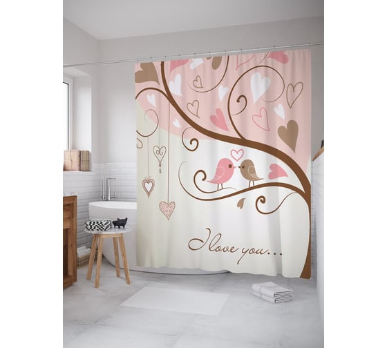 Штора (занавеска) для ванной JoyArty "Свидание на ветке" из сатена, 180х200 см с крючками, sc_53023