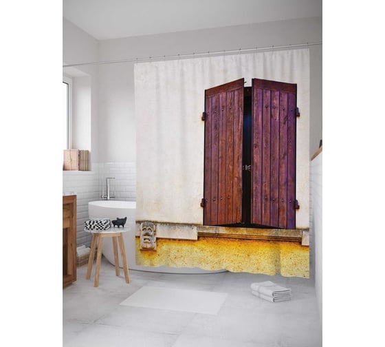 Штора (занавеска) для ванной JoyArty "Таинственная дверь" из сатена, 180х200 см с крючками, sc_14204