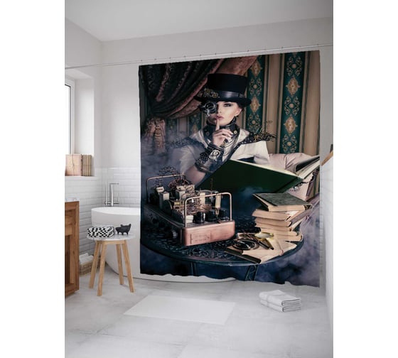 Штора (занавеска) для ванной JoyArty "Таинственный читатель" из сатена, 180х200 см с крючками, sc_15444