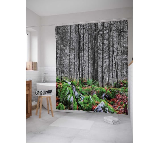 Штора (занавеска) для ванной JoyArty "Таинственный лес" из сатена, 180х200 см с крючками, sc_4913