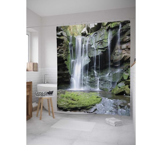 Штора (занавеска) для ванной JoyArty "Таинственный водопад" из сатена, 180х200 см с крючками, sc_10104