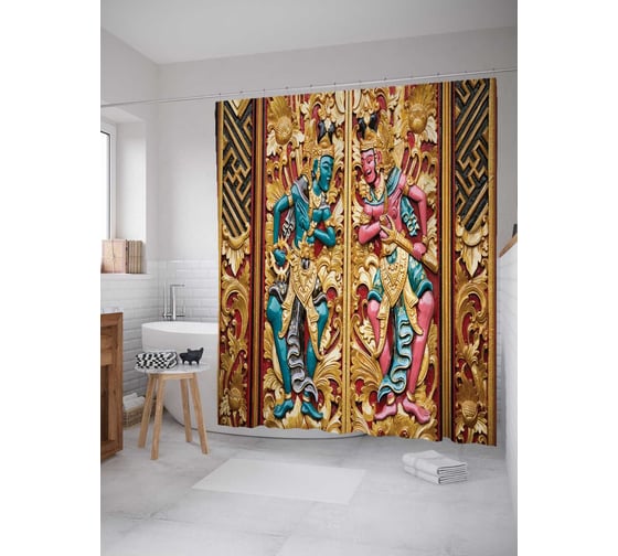 Штора (занавеска) для ванной JoyArty "Тайный заговор" из сатена, 180х200 см с крючками, sc_16214