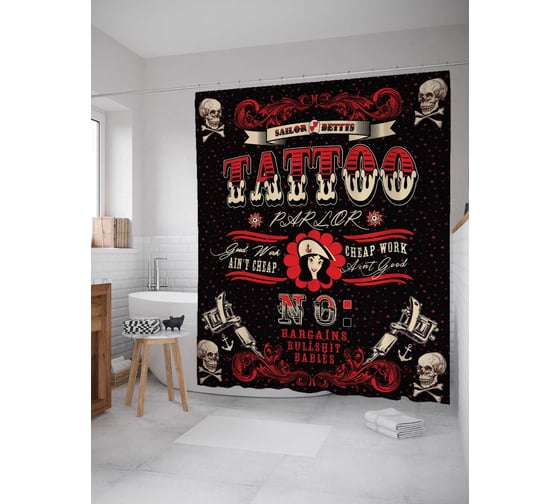 Штора (занавеска) для ванной JoyArty "Тату салон" из сатена, 180х200 см с крючками, sc_6909