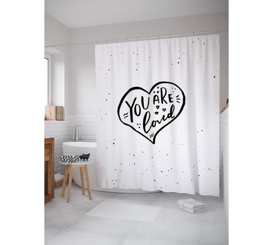 Штора (занавеска) для ванной JoyArty "Тебя любят" из сатена, 180х200 см с крючками, sc_53916