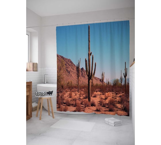Штора (занавеска) для ванной JoyArty "Техасские долины" из сатена, 180х200 см с крючками, sc_15710