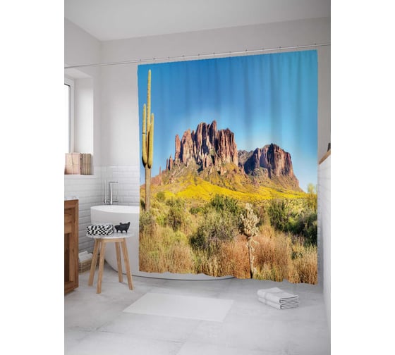 Штора (занавеска) для ванной JoyArty "Техасский пейзаж" из сатена, 180х200 см с крючками, sc_15715