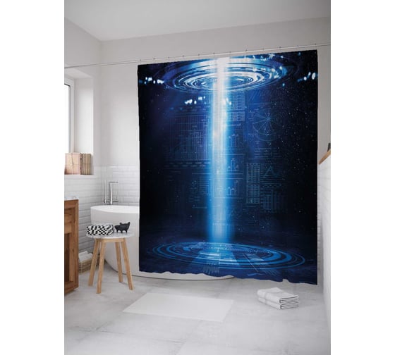 Штора (занавеска) для ванной JoyArty "Технолуч" из сатена, 180х200 см с крючками, sc_30332