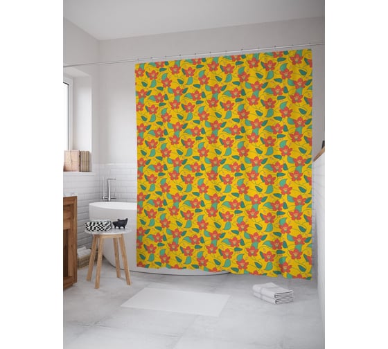 Сопутствующие товары для шторки-занавески JOYARTY Текстура с цветущей флорой из сатена, 180х200 см с крючками