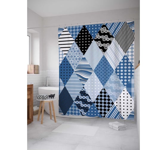 Штора (занавеска) для ванной JoyArty "Текстурные ромбы" из сатена, 180х200 см с крючками, sc_19432