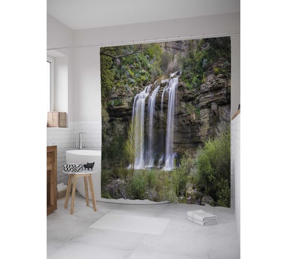 Штора (занавеска) для ванной JoyArty "Тенгинские водопады" из сатена, 180х200 см с крючками, sc_32327