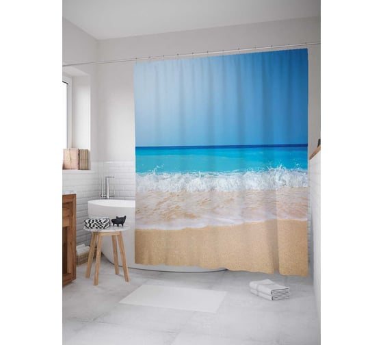 Штора (занавеска) для ванной JoyArty "Теплая волна" из сатена, 180х200 см с крючками, sc_21089