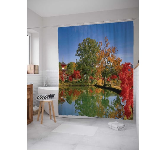 Штора (занавеска) для ванной JoyArty "Тихий став" из сатена, 180х200 см с крючками, sc_14127