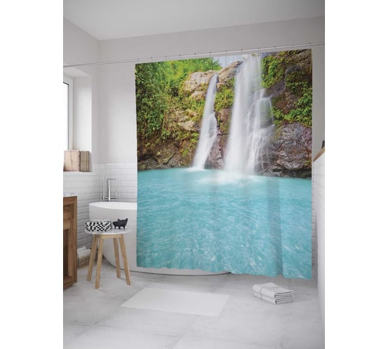 Штора (занавеска) для ванной JoyArty "Тихий водопад" из сатена, 180х200 см с крючками, sc_10141