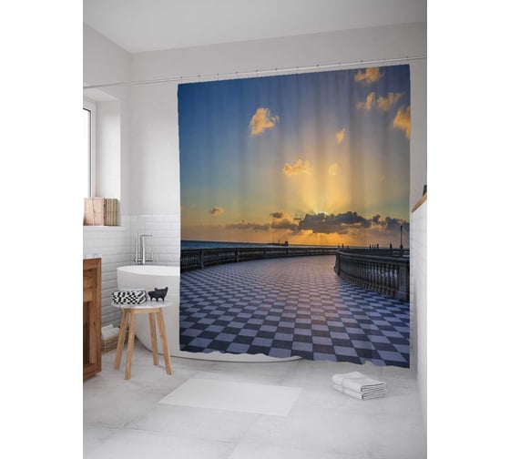 Штора (занавеска) для ванной JoyArty "Тихий закат" из сатена, 180х200 см с крючками, sc_34926