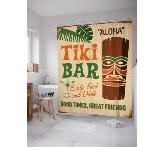 Сопутствующие товары для шторки-занавески JOYARTY Тики-бар Алоха из сатена, 180х200 см с крючками