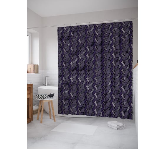 Штора (занавеска) для ванной JoyArty "Точечный дудл" из сатена, 180х200 см с крючками, sc_54428