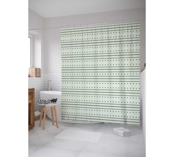 Штора (занавеска) для ванной JoyArty "Точки и линии" из сатена, 180х200 см с крючками, sc_34085