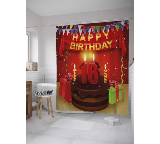 Сопутствующие товары для шторки-занавески JOYARTY Торт и подарки из сатена, 180х200 см с крючками