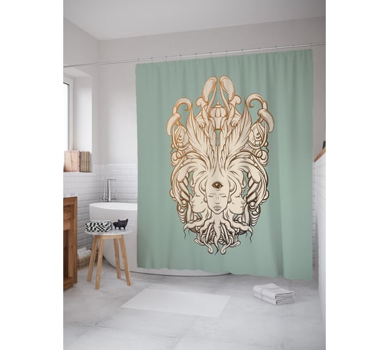 Штора (занавеска) для ванной JoyArty "Третий глаз" из сатена, 180х200 см с крючками, sc_58789