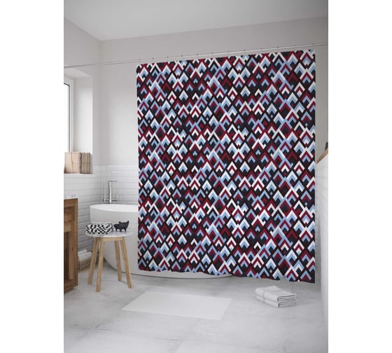 Штора (занавеска) для ванной JoyArty "Треугольные чешуйки" из сатена, 180х200 см с крючками, sc_32385