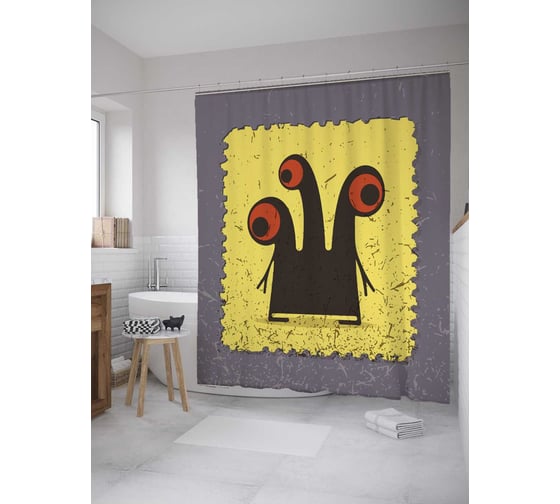 Штора (занавеска) для ванной JoyArty "Триглазик" из сатена, 180х200 см с крючками, sc_28475