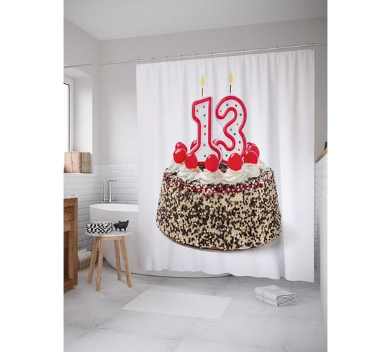Штора (занавеска) для ванной JoyArty "Тринадцать на торте" из сатена, 180х200 см с крючками, sc_35042