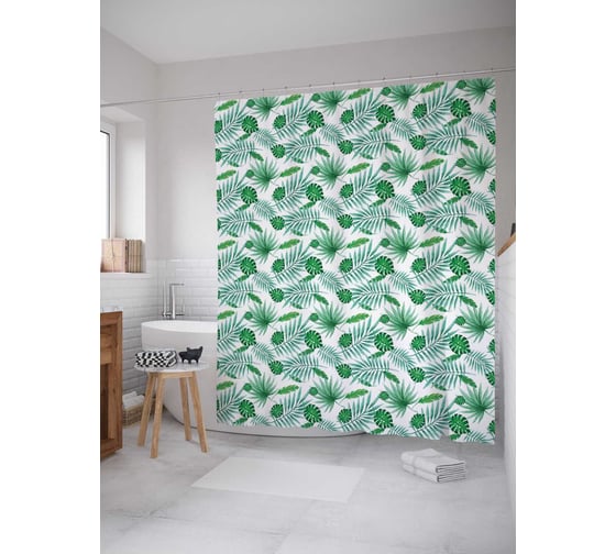 Сопутствующие товары для шторки-занавески JOYARTY Тропические листья из сатена, 180х200 см с крючками