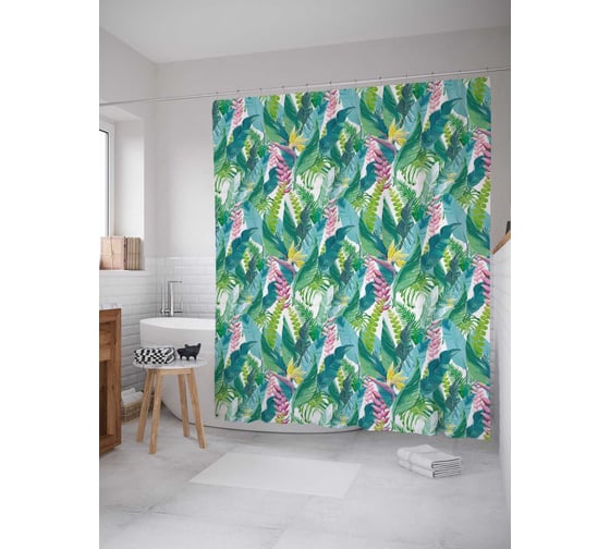 Сопутствующие товары для шторки-занавески JOYARTY Тропический лес из сатена, 180х200 см с крючками