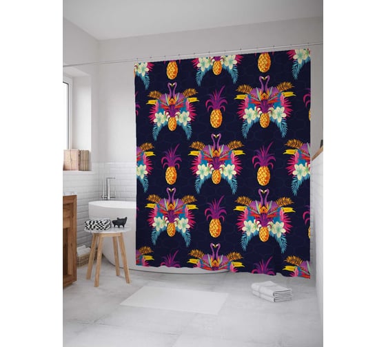 Сопутствующие товары для шторки-занавески JOYARTY Тропический узор ананасов из сатена, 180х200 см с крючками