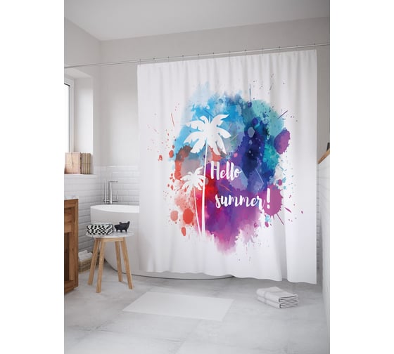 Сопутствующие товары для шторки-занавески JOYARTY Тропическое лето из сатена, 180х200 см с крючками