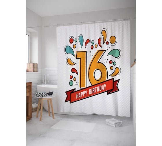 Штора (занавеска) для ванной JoyArty "Цифра с капельками" из сатена, 180х200 см с крючками, sc_34224