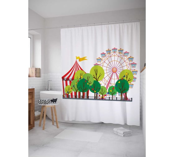 Штора (занавеска) для ванной JoyArty "Цирк в парке развлечений" из сатена, 180х200 см с крючками, sc_15465