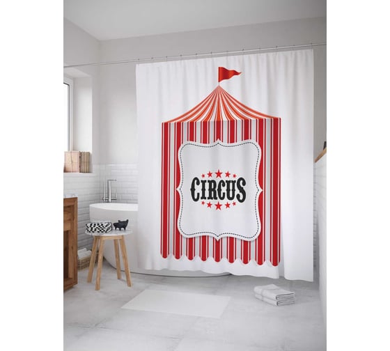 Штора (занавеска) для ванной JoyArty "Цирковая атмосфера" из сатена, 180х200 см с крючками, sc_9504
