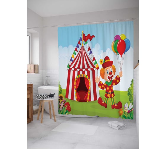 Штора (занавеска) для ванной JoyArty "Цирковое счастье" из сатена, 180х200 см с крючками, sc_12752