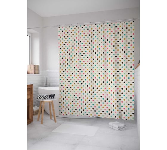 Сопутствующие товары для шторки-занавески JOYARTY Цветной горошек из сатена, 180х200 см с крючками