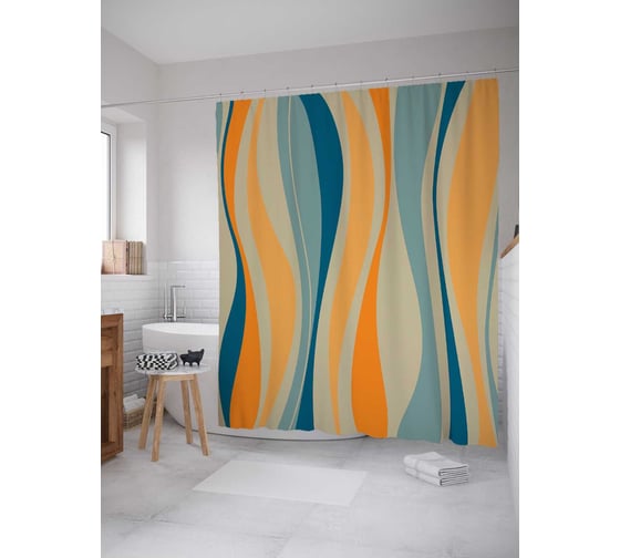 Сопутствующие товары для шторки-занавески JOYARTY Цветной волнистый узор из сатена, 180х200 см с крючками