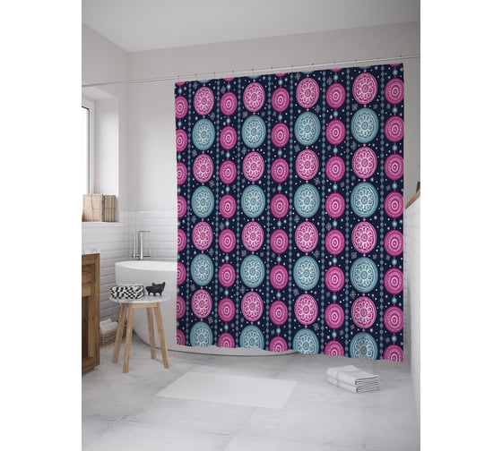 Сопутствующие товары для шторки-занавески JOYARTY Цветные диски мандалы из сатена, 180х200 см с крючками