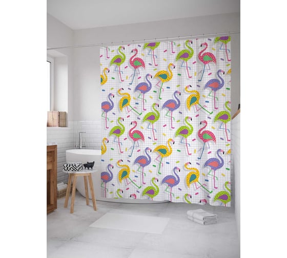 Сопутствующие товары для шторки-занавески JOYARTY Цветные фламинго из сатена, 180х200 см с крючками
