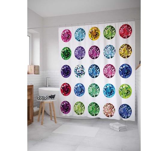 Сопутствующие товары для шторки-занавески JOYARTY Цветные камни из сатена, 180х200 см с крючками