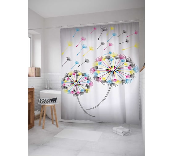 Сопутствующие товары для шторки-занавески JOYARTY Цветные одуваны из сатена, 180х200 см с крючками