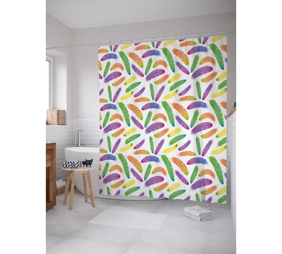 Сопутствующие товары для шторки-занавески JOYARTY Цветные перья из сатена, 180х200 см с крючками