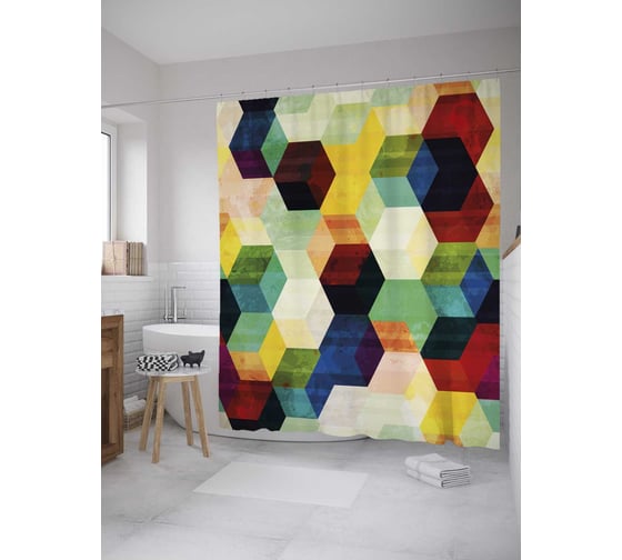 Сопутствующие товары для шторки-занавески JOYARTY Цветные пятиугольники из сатена, 180х200 см с крючками