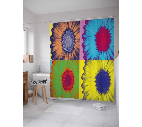 Штора (занавеска) для ванной JoyArty "Цветные различия" из сатена, 180х200 см с крючками, sc_21383