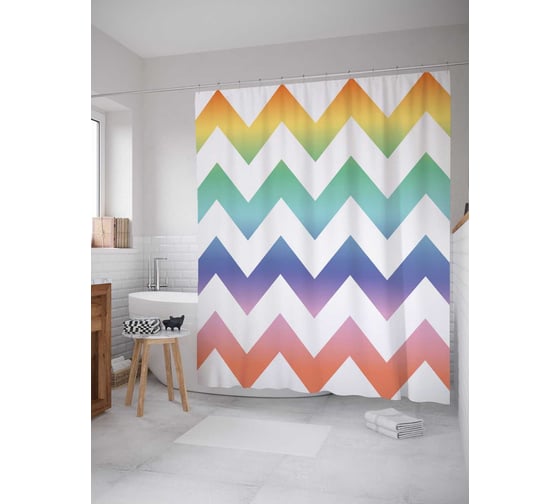 Сопутствующие товары для шторки-занавески JOYARTY Цветные зигзаги из сатена, 180х200 см с крючками