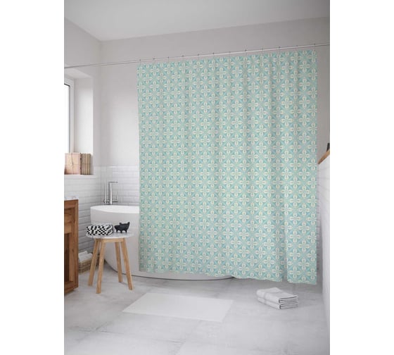 Штора (занавеска) для ванной JoyArty "Цветочки в ромбах" из сатена, 180х200 см с крючками, sc_31891