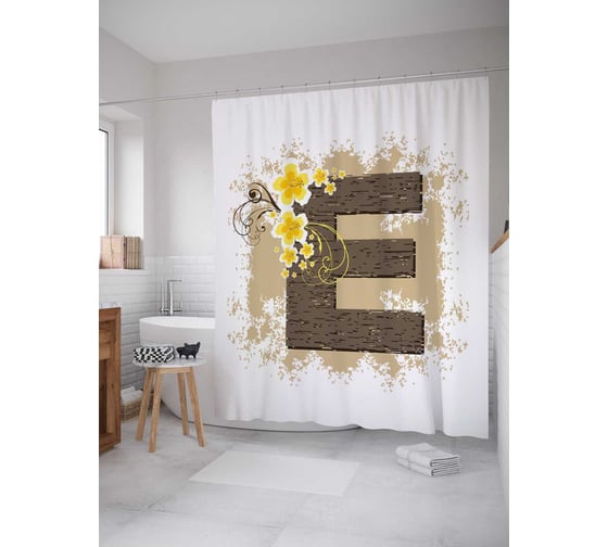 Штора (занавеска) для ванной JoyArty "Цветочная e" из сатена, 180х200 см с крючками, sc_4045e